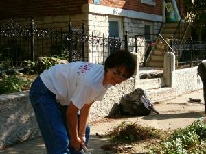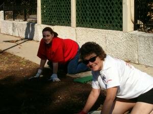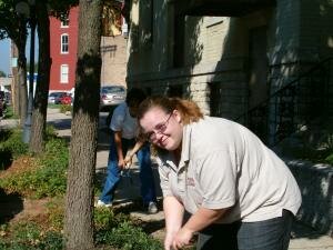 Volunteers from the Dayton Business Journal working outdoors at Womanline